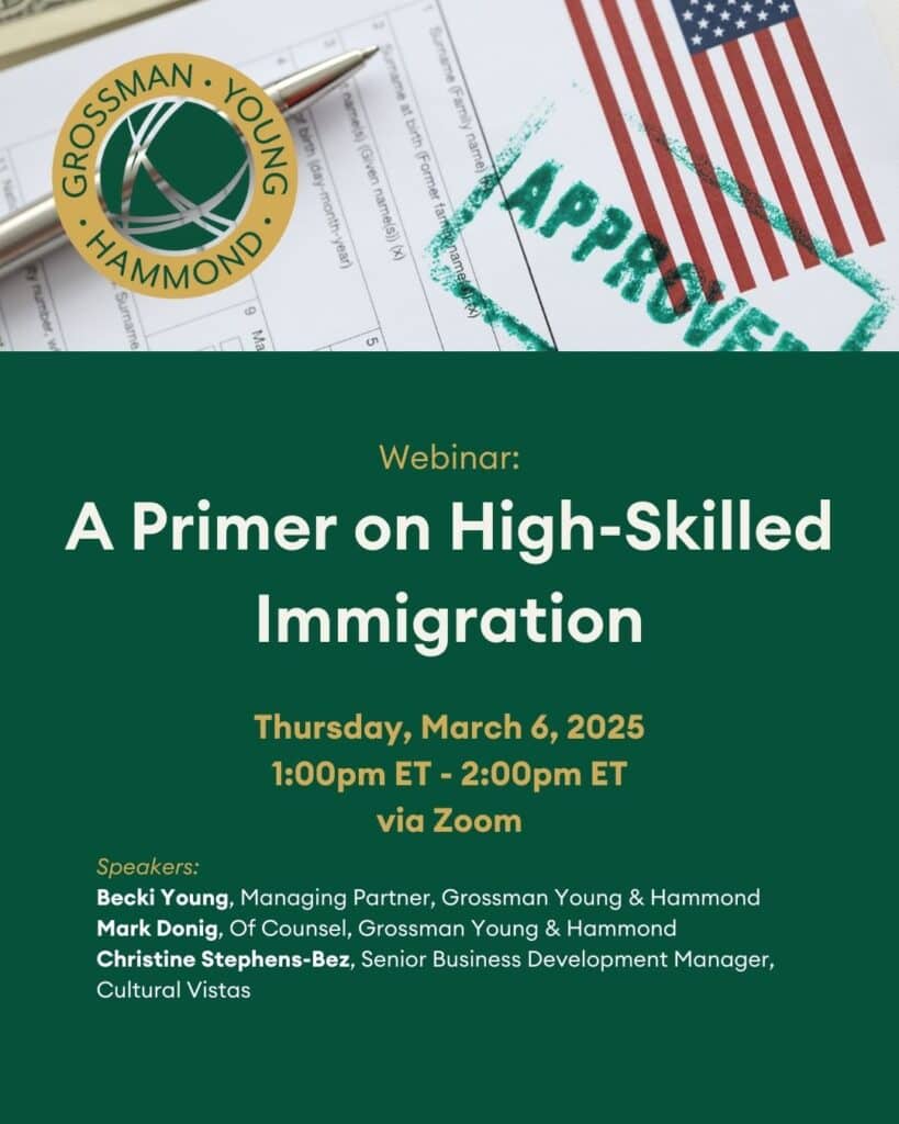 This webinar provides an overview of the U.S. immigration system, focusing on the fundamentals of employment-based immigration and an overview of visa options available for high-skilled foreign nationals. Learn about the key visa categories for investors, entrepreneurs, executives, and other high-skilled professionals.