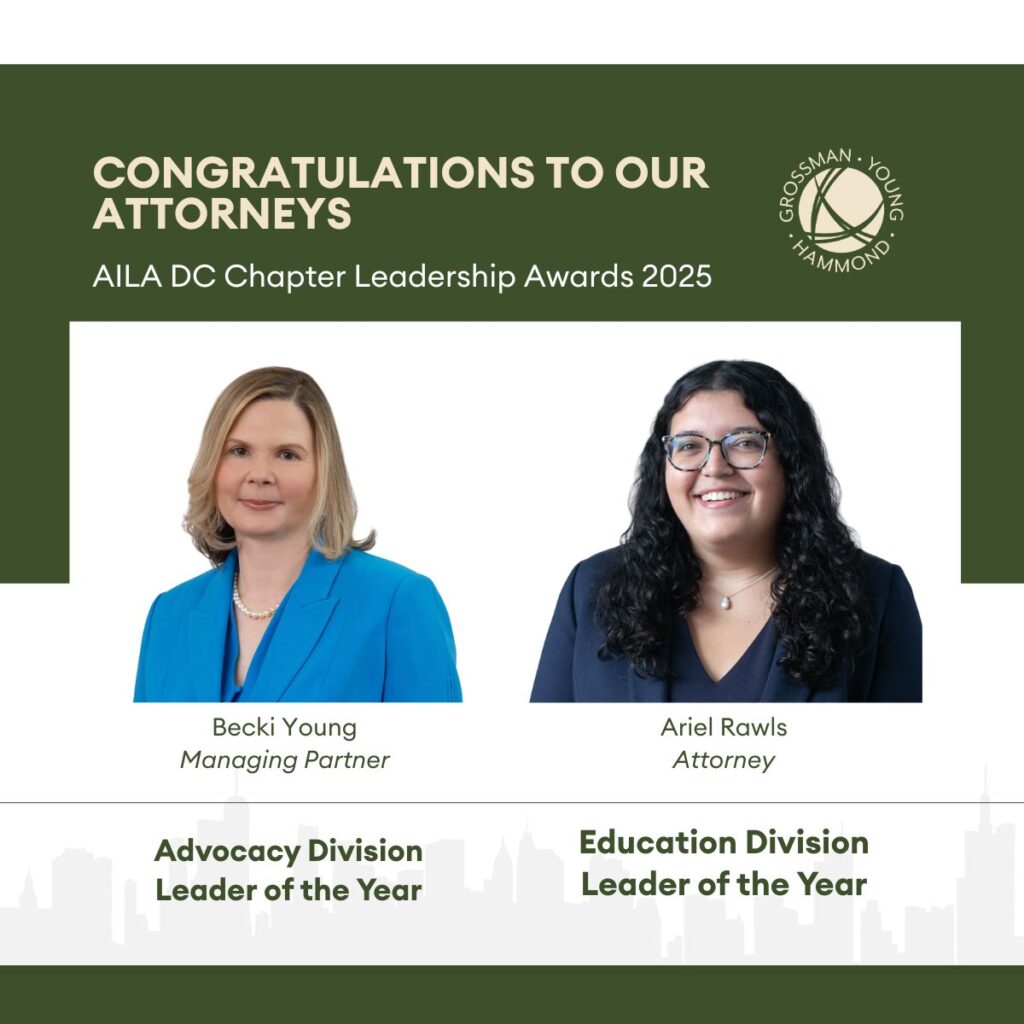 Every year, the Washington DC Chapter of the American Immigration Lawyers Association presents awards to members who exemplify leadership in the local immigration law community. This year, two GYH attorneys were recognized! Managing Partner Becki Young was awarded Leader of the Year for the Advocacy Division. Attorney Ariel Rawls was awarded Leader of the Year for the Education Division.